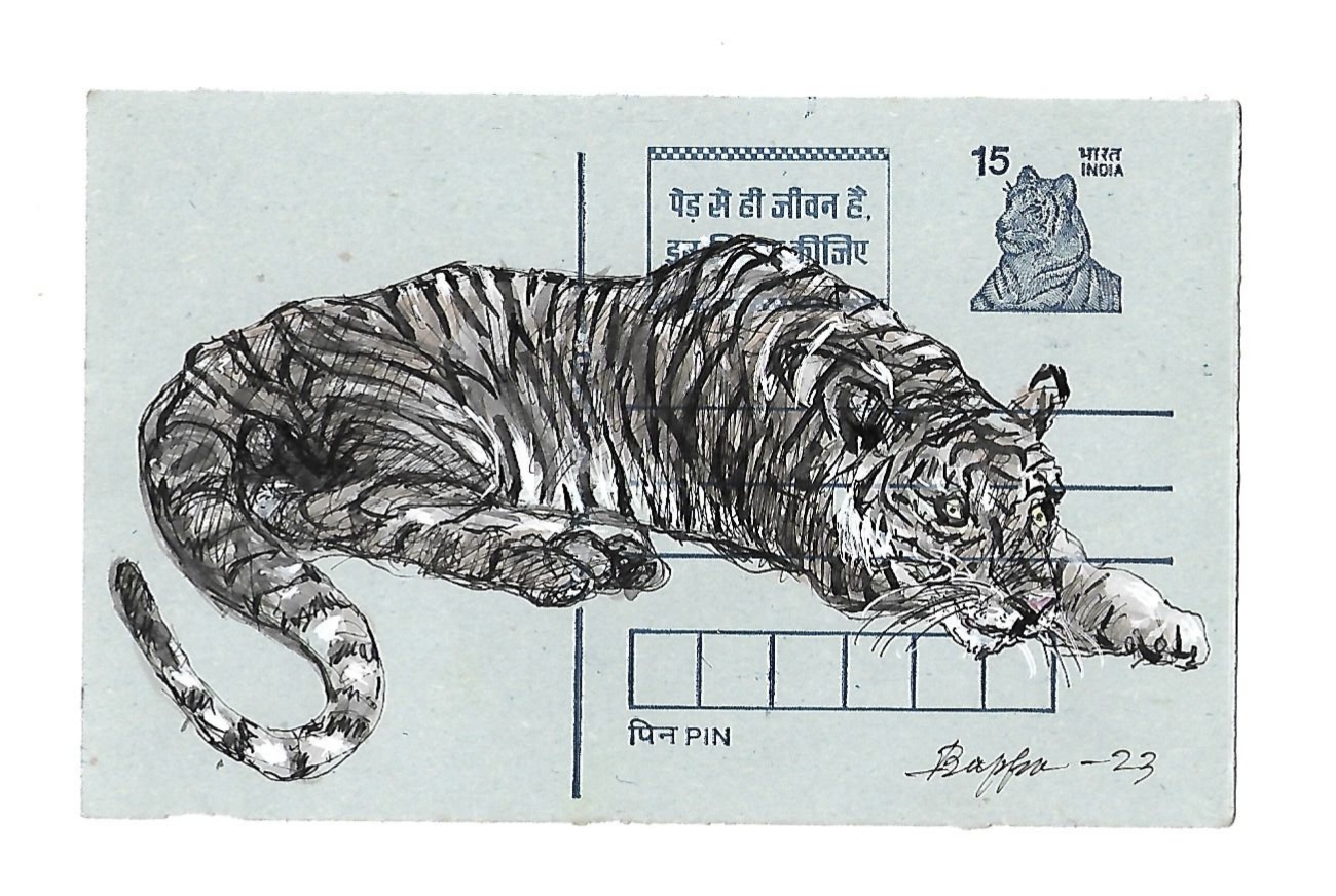 Tiger on postcard